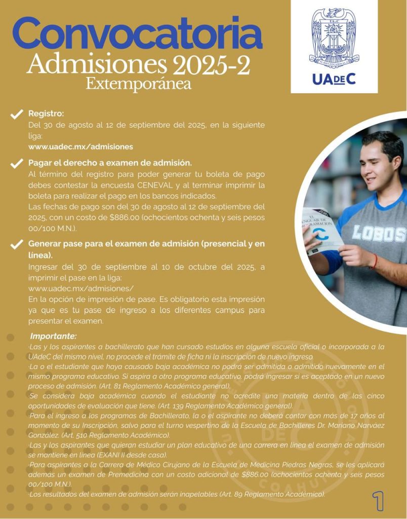 📢 Convocatoria UAdeC – Admisiones 2025-2 Extemporánea