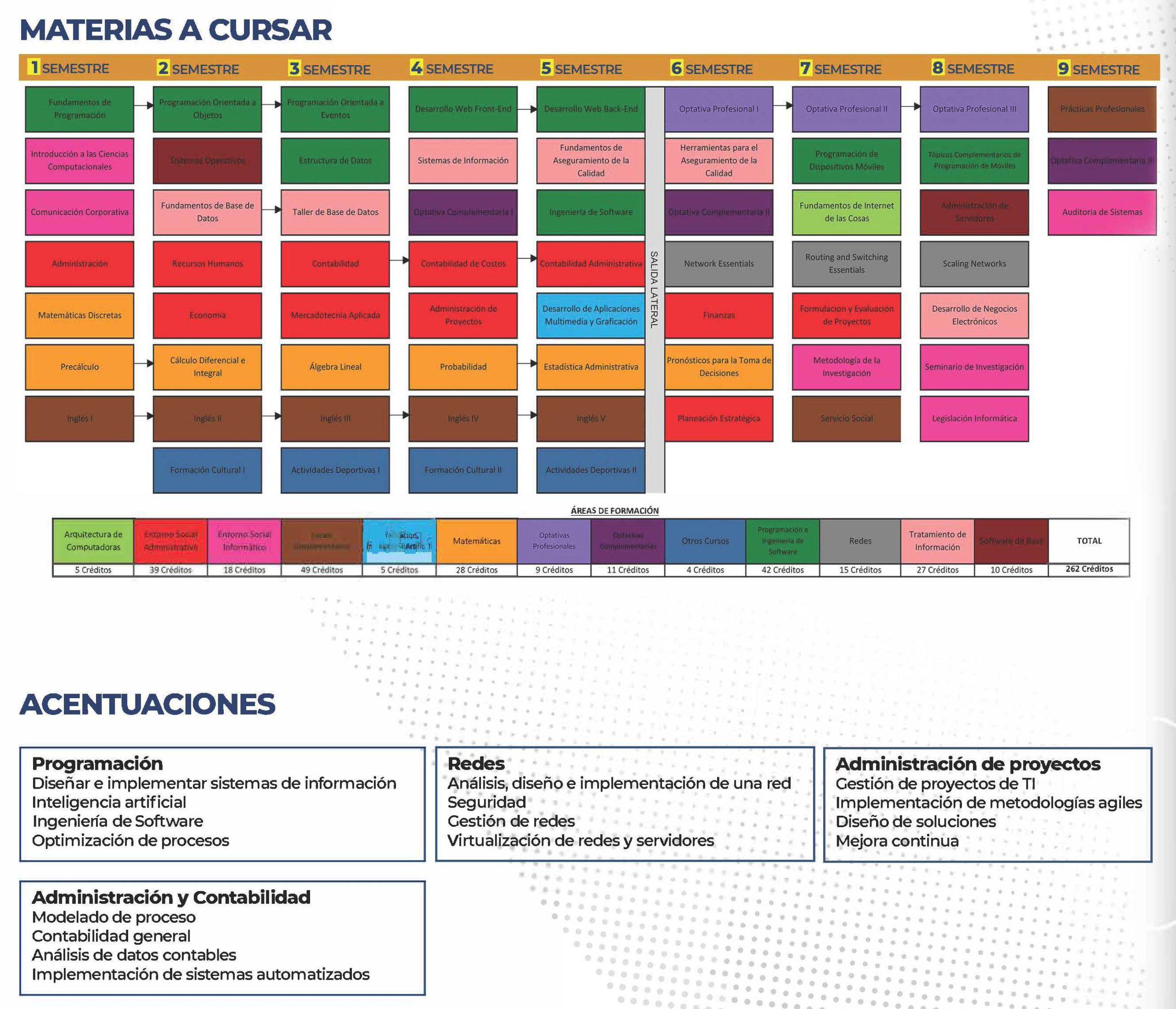 - Administración de Tecnologías Informáticas: Gestiona TI en organizaciones y desarrolla software con estándares de calidad.